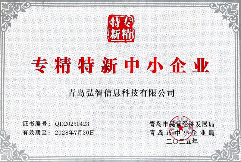 08-21 青島弘智信息科技有限公司再度榮膺"專精特新中小企業(yè)"稱號(hào)——以創(chuàng)新驅(qū)動(dòng)發(fā)展,以專業(yè)鑄就卓越